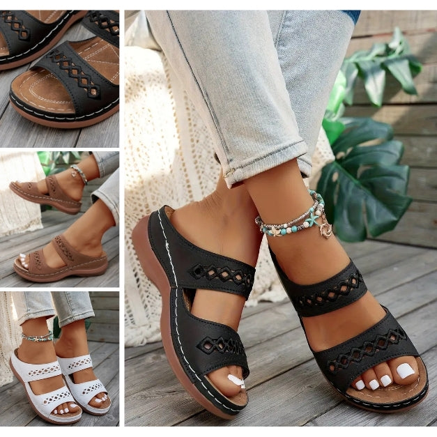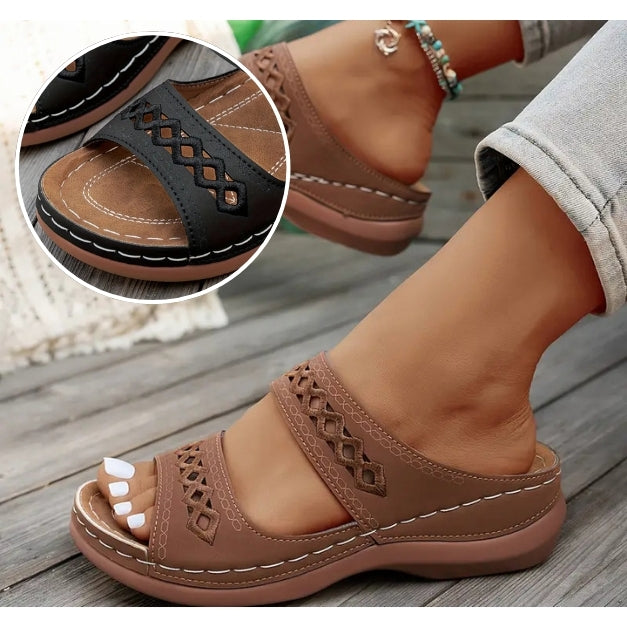 La cuña ligera de las sandalias Brisa ofrece elevación sin incomodidad, perfecta para largas jornadas al aire libre.